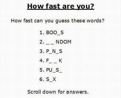 1 boobs 2 condom 3 pants 4 fuck 5 pussy 6 sex