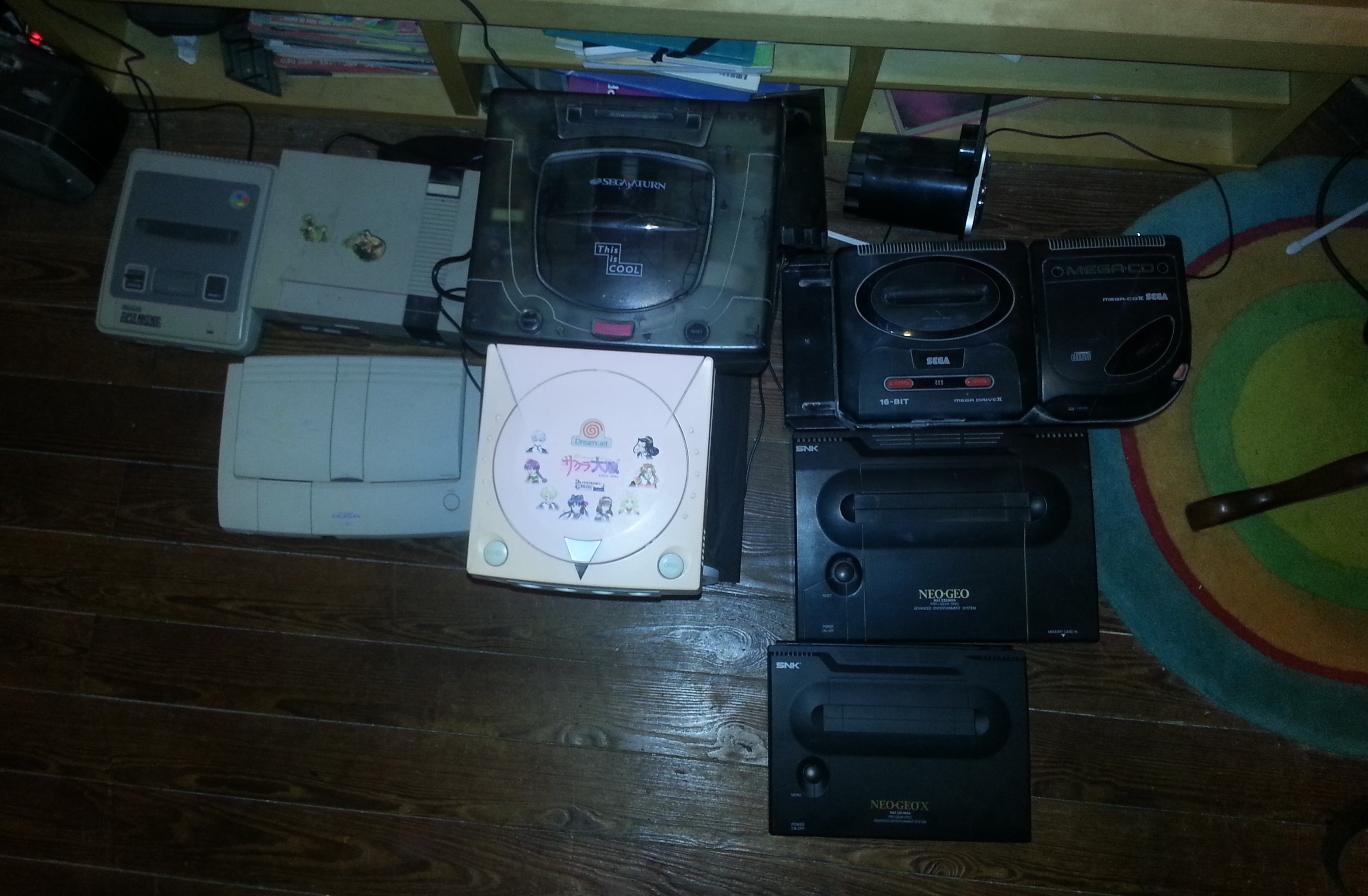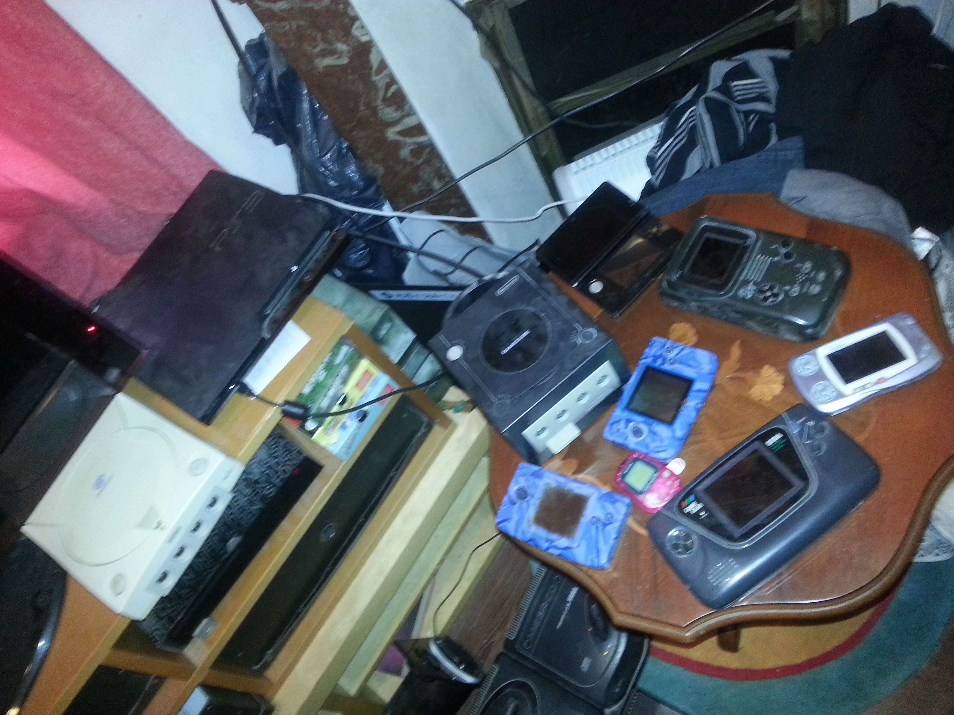 moi perso j'ai une ps1 et une ps2 au grenier mais plus ma x360 et la ps3 donc ça sert à rien de faire une photo. Sinon ça se voit que tu as quelques années d'accumulation là ;) .