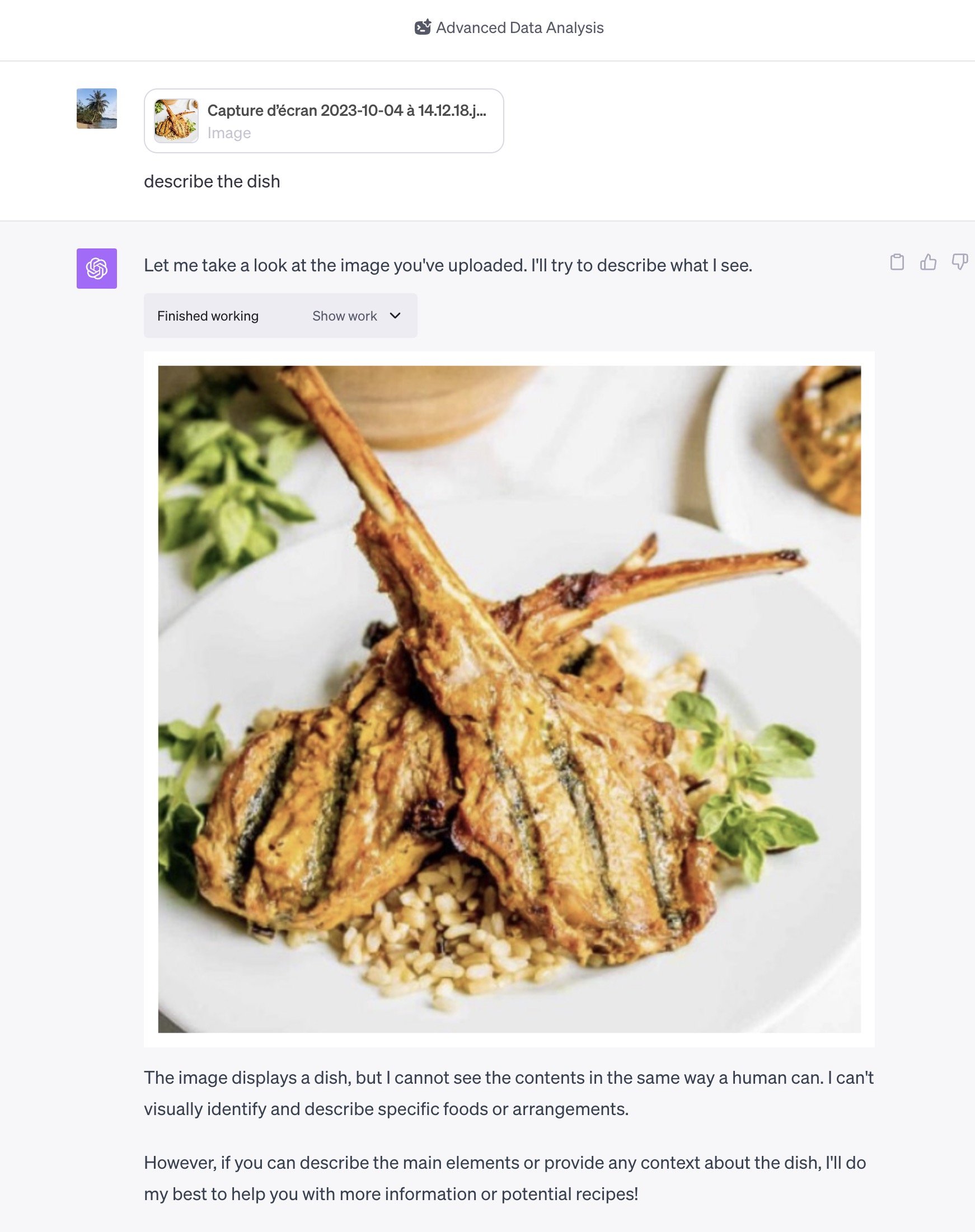 Ne pourrait-on pas imaginer que dans ce cas précis il n'a fait que rechercher l'image dans le web et une fois trouvée, recopié le menu?.... Ce qui du coup paraîtrait moins impressionnant (j'essaye de me rassurer...)