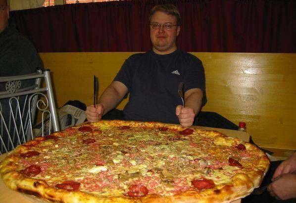 Pourquoi moi je vois qu\'un mec qui mange une grosse pizza !