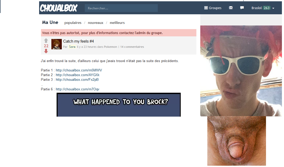 Bref, ici c'est choualbox, pas un blog ou chacun peut créer / modérer un groupe comme si c'était son espace perso, Sora fait un boulot de modérateur de merde, go lui offrir une golden shower et puis ça sera réglé.