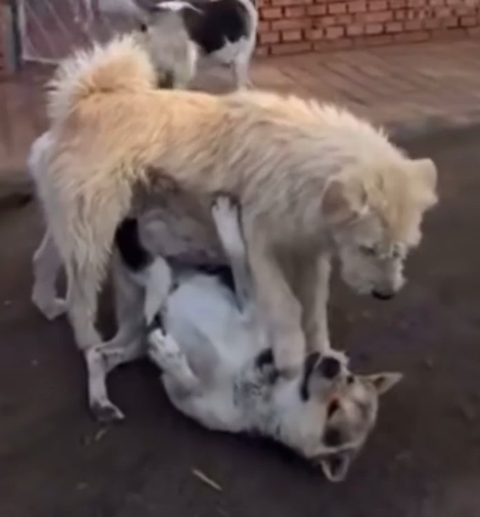Le dogue qui fait 2 fois la taille "ptain merde j'lavais pas vu !!!".
