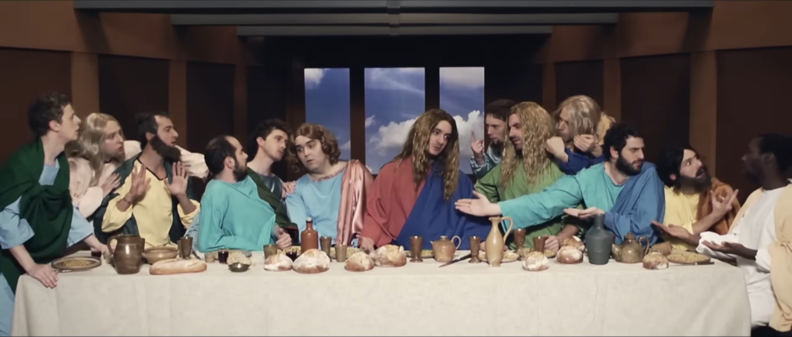 Peut-être car tu n'as pas de femme à barbe en apôtre, une grosse en Jesus (changement de sexe ET de corpulence). Peut-être car ils sont habillé comme dans le tableau. Peut-être car y'a aucun message politique derrière et que c'est juste bon enfant, pour rigoler, en appuyant la situation pour la rendre comique ?