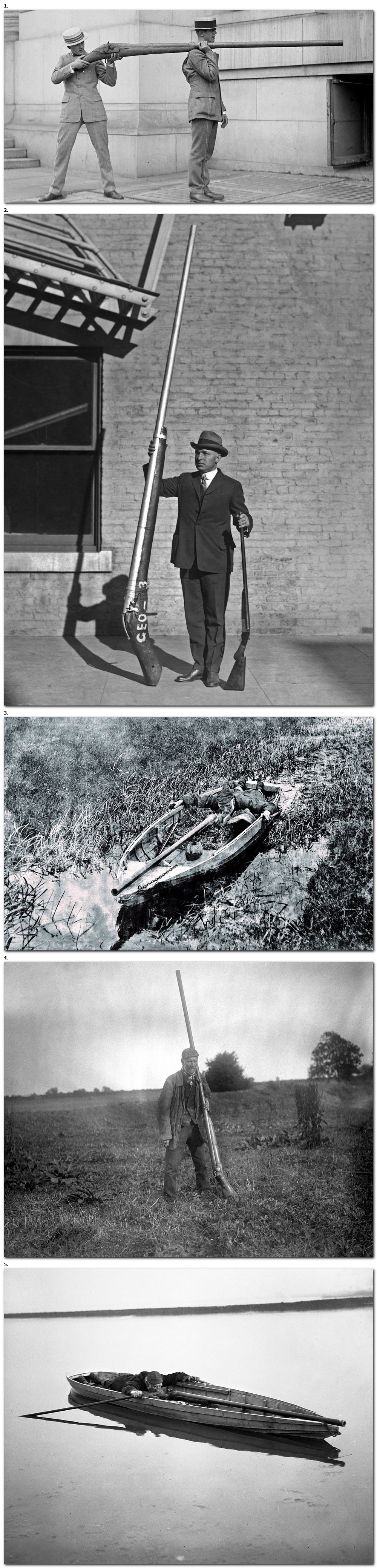 Fusil de chasse ne pouvant être utilisé que sur une barque du fait de son recul, il pouvait abattre plusieurs dizaines de canards d'un seul coup.