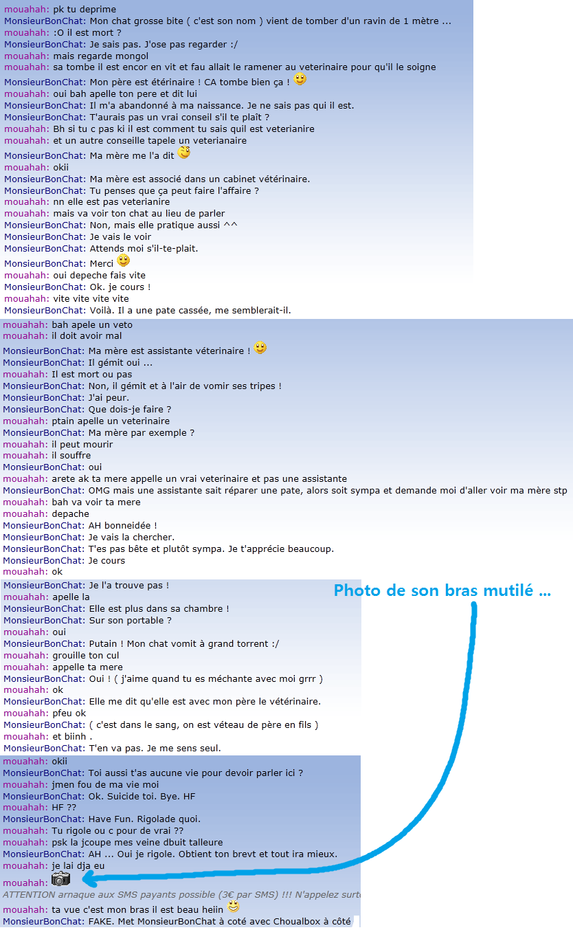 putain tu prend comme pseudo \"BelleBiAtch\" et t\'as 20 discussion en 5 minutes...