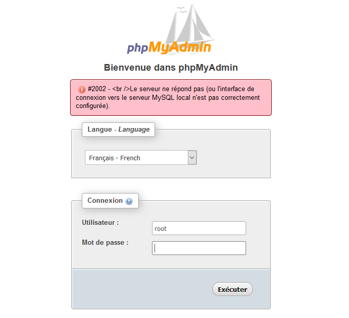 Voilà, j'ai WAMP fraîchement installé sur mon nouveau Windows 10 flambant neuf. Je vais pour me connecter à PhpMyAdmin (lui aussi, fraîchement installé flambant neuf blablabla vous avez compris...) et je tombe sur... Ça ! Qu'est-ce qu'il se passe-t-il ? C'est quoi ce bordel !?