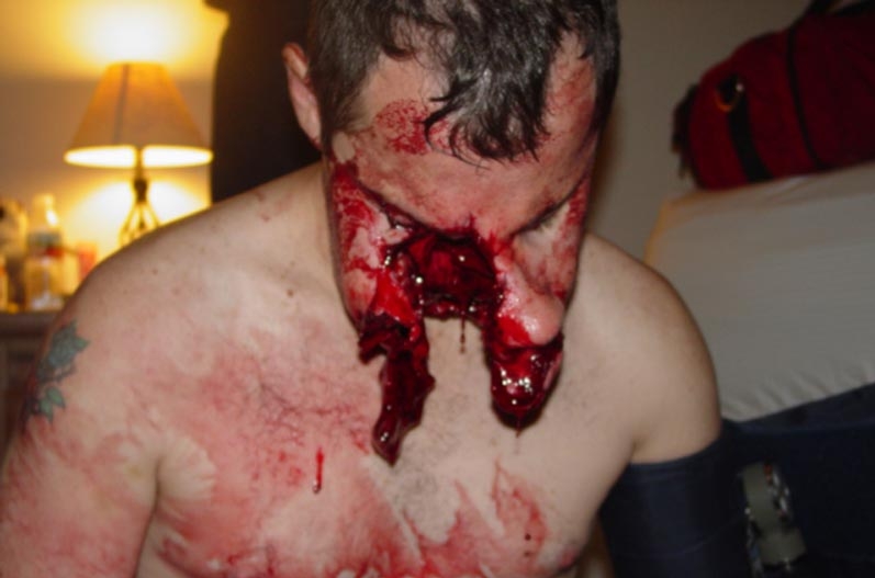 coup de fusil effectivement, \'fin du moins arme à feu. J\'ai déjà vu un accident, c\'est le même résultat.