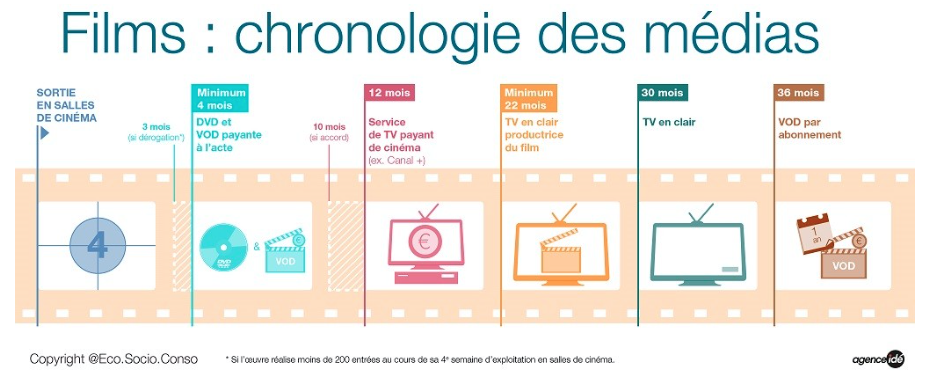Il s'agit en fait de permettre à tous les diffuseurs de profiter de la sortie d'un film un à un. En fait il s'agit de definir au bout de combien de temps un film peut sortir en DVD, arrivée sur une chaine payante, une chaine publique, en VOD, en streaming jusqu'a devenir Gratuit.