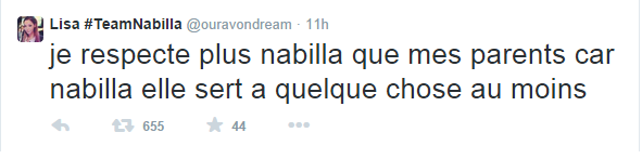 je respecte plus nabilla que mes parents car nabilla elle sert a quelque chose au moins
