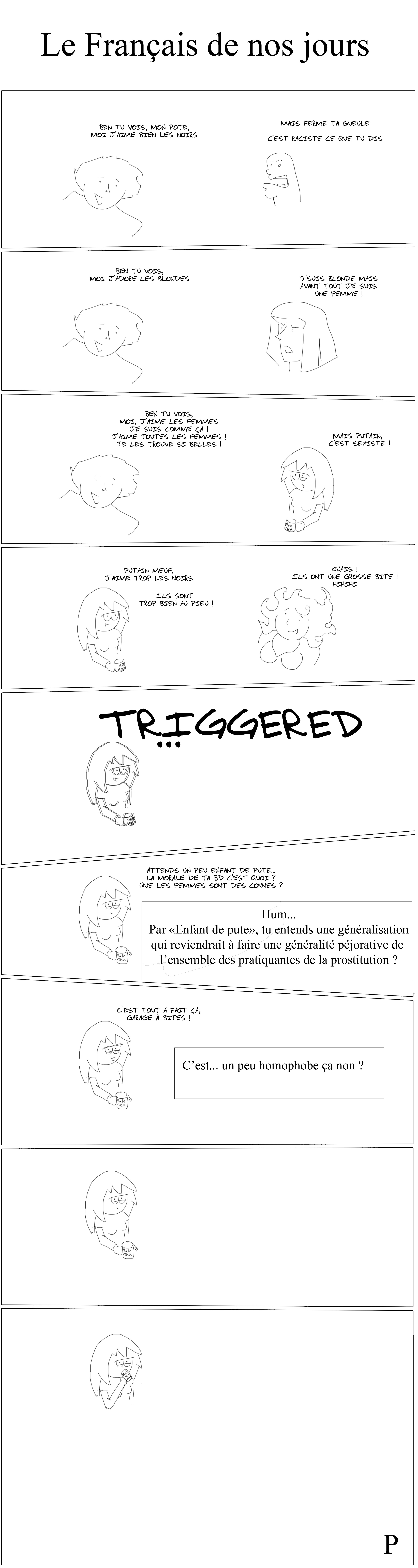 Person 2: "She is triggered"
