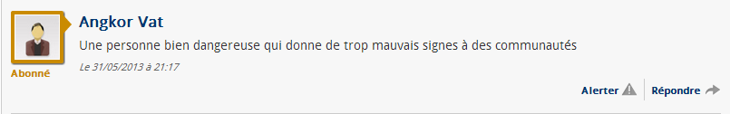 Putain ce mec je sais pas pourquoi quand j'ai lu son com, j'ai penser direct à un putain de clochard, genre le mec rageux qui passe ses journées assis sur un quai de gare sur sa tablette, avec son chapeau sur la tête, et qui comprend rien à rien, sauf les infos de TF1 ou du figaro..... Bref, ça ma mis les nerfs du coup ! quel monde de cons !