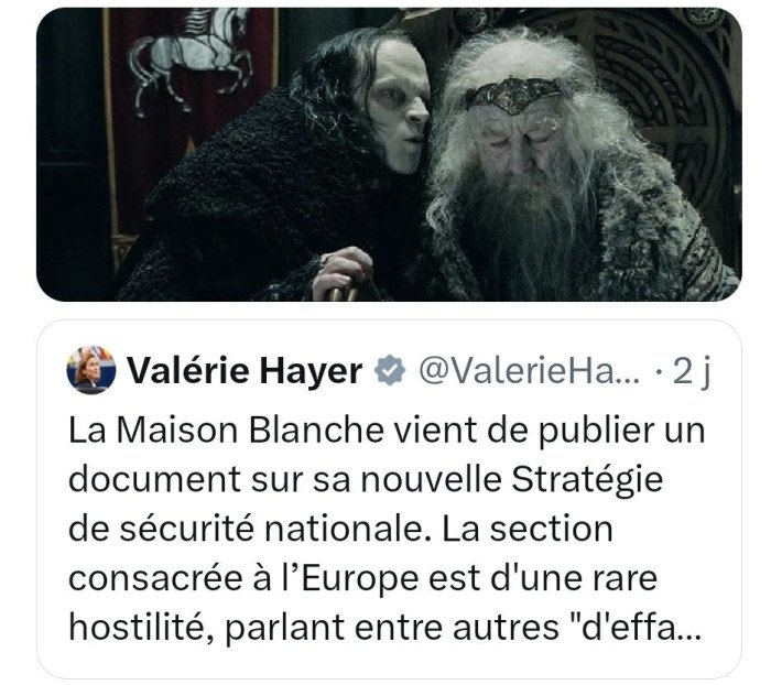 "La Maison Blanche vient de publier un document sur sa nouvelle Stratégie de sécurité nationale. La section consacrée à l’Europe est d'une rare hostilité, parlant entre autres "d'effacement civilisationnel", "remise en cause de la liberté d’expression", "perte des identités nationales".