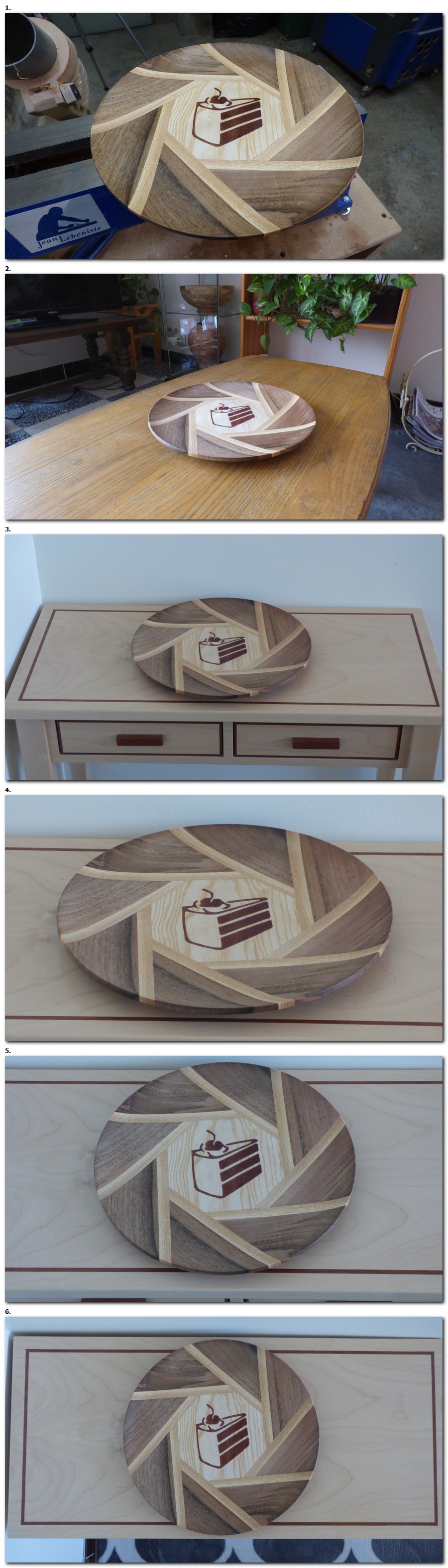 Dernière réalisation sur le thème de Portal, une assiette en bois représentant le logo d'Aperture Science et la fameuse part de gâteau.