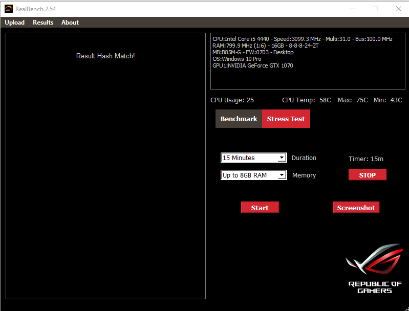 Les temp sont les mêmes avec un stress test 15 min 16gb. (je peux pas mettre plus d'image mais CPU : 74° et GPU : 60°) chelou
