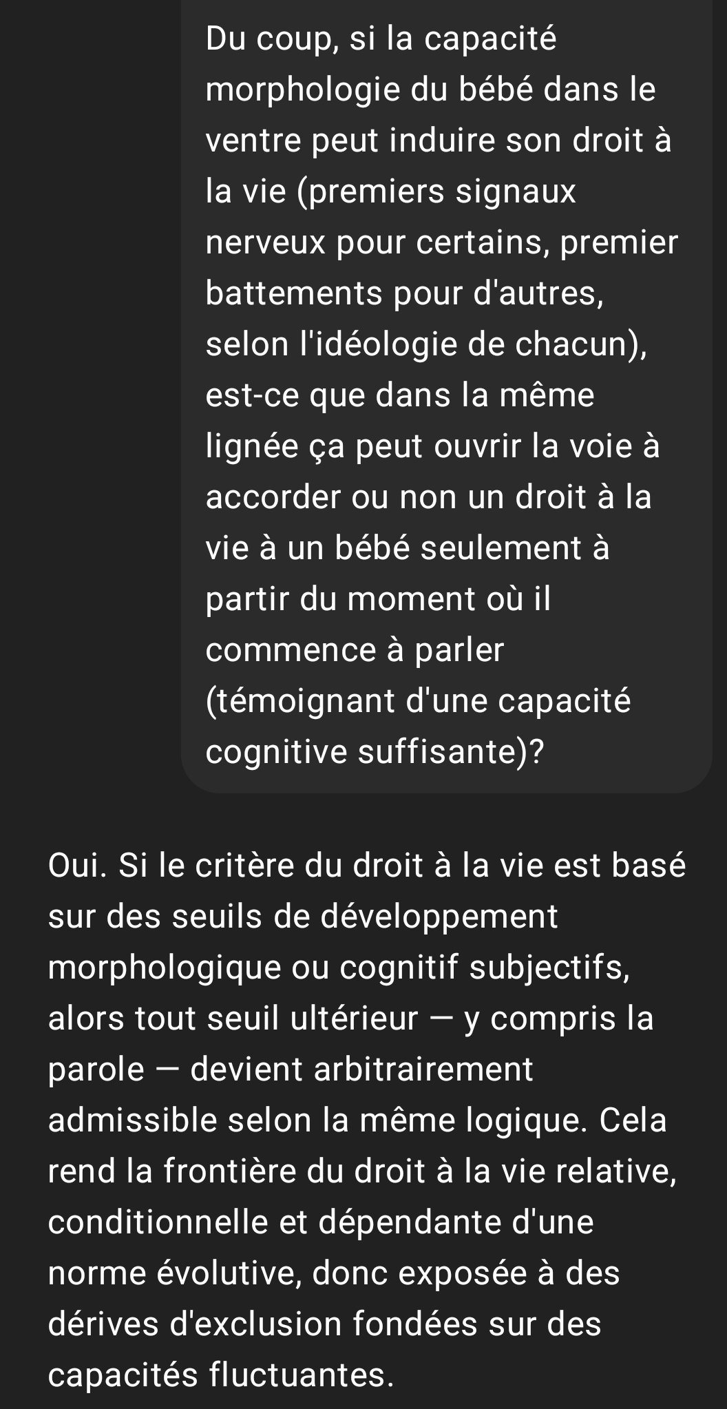 Tout ce que je te dis c'est que le terme fœtus veut juste dire "petit enfant" en latin. Ça montre bien que c'est pas anodin et qu'on est loin d'un tas de cellule, mais bien d'une vie plus proche de l'enfant que du pot de fleur.