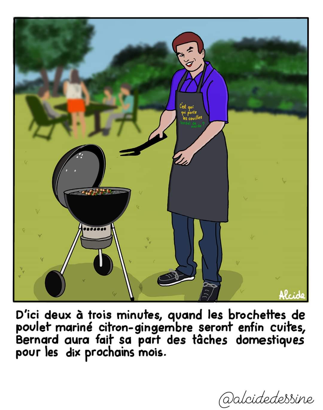je parle ce que je voit ! et ce que je voit est réel et non issu d'un imaginaire quelconque ... et de partout parmi la centaines de soirée en tout genre parmi une foule diverses de personnes que ce soit famille,pote,couple,bref toutes les soirées possible avec un barbeuc en tête d'affiche,jamais les femmes (ou même les filles a notre jeunesse) n'ont l'idée d'aller faire ça d'elle même,et même avec ma sœur et ses copines jamais de la vie elle on eu l'idée de se faire un barbeuc entre elle c'est inimaginable,elle préfère les fast food ou faire les gâteau de fin de repas des soirées.