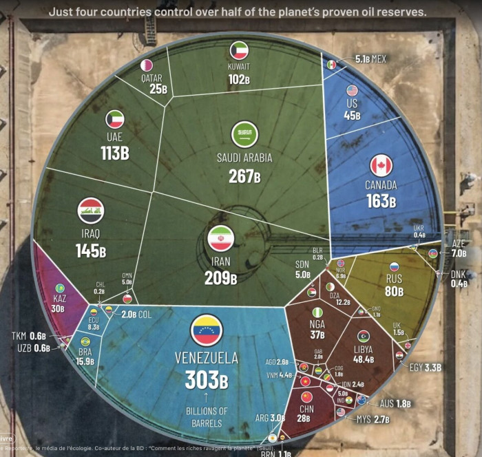 Justement, le problème n'est pas de vendre mais de céder les droits d'exploitation. Comme en Irak. Le Venezuela voulait vendre mais les EU ne veulent pas de concurrence de marché, ils veulent posséder pour éviter que la Chine n'y mette son nez (Ce sont des impérialistes et plus des capitalistes depuis longtemps). Les Vénézuéliens l'ont dans le cul et bien profond. L'Arabie Saoudite est un grand propriétaire immobilier et culturel partout dans le monde, ils ont bien joué les cons. L'Iran a la bombe atomique quand à elle mais c'est surtout la chasse gardée d'Israël.