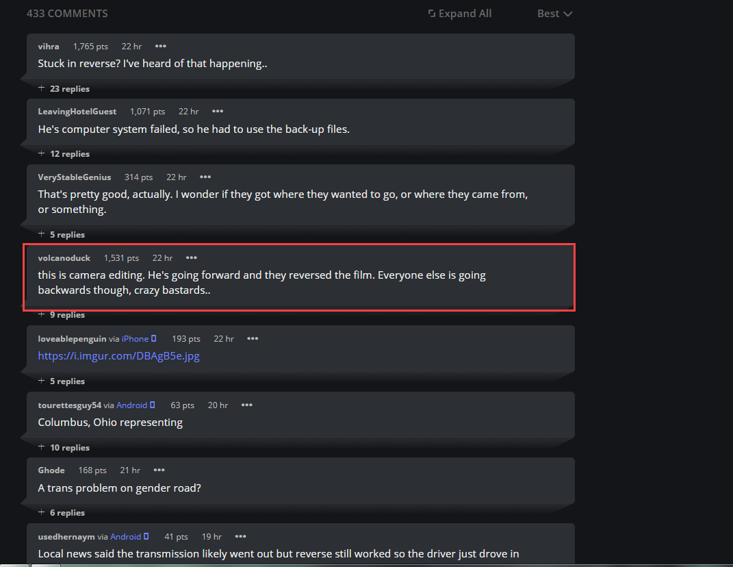 Afin de ne pas salir la calandre ni le capot avec des insectes écrasés, il avait fait tout le retour (environ 5km) en marche arrière.