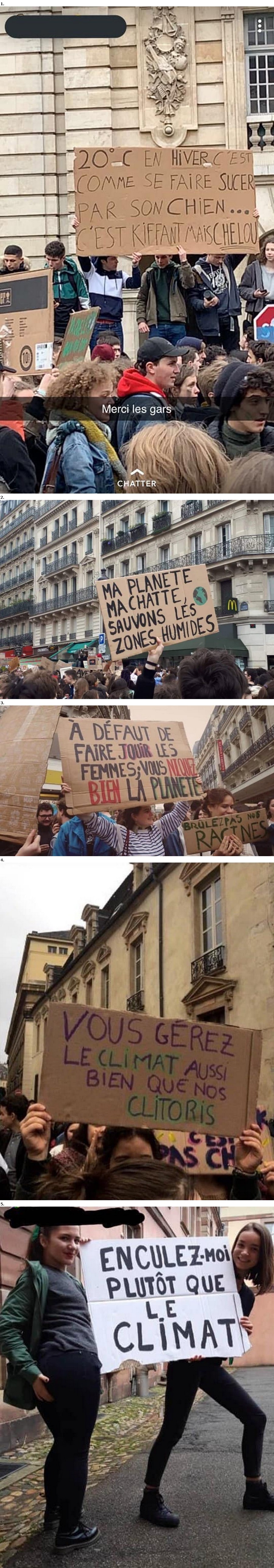 J'ai vu une autre photo comme ça avec deux gamines de 14 piges et une pancarte "encule moi, pas le climat"