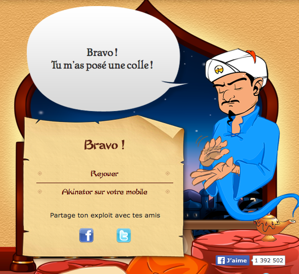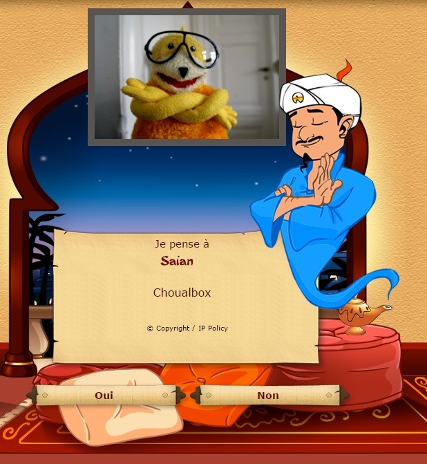 Bah j'ai joué à akinator, il m'a posé des questions ( les trois ci-dessus sont les trois dernières ) et il m'a trouvé Laink comme résultat.