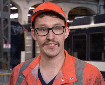 un train qui défile à un passage à niveau suivit d'un gros plan sur ses yeux