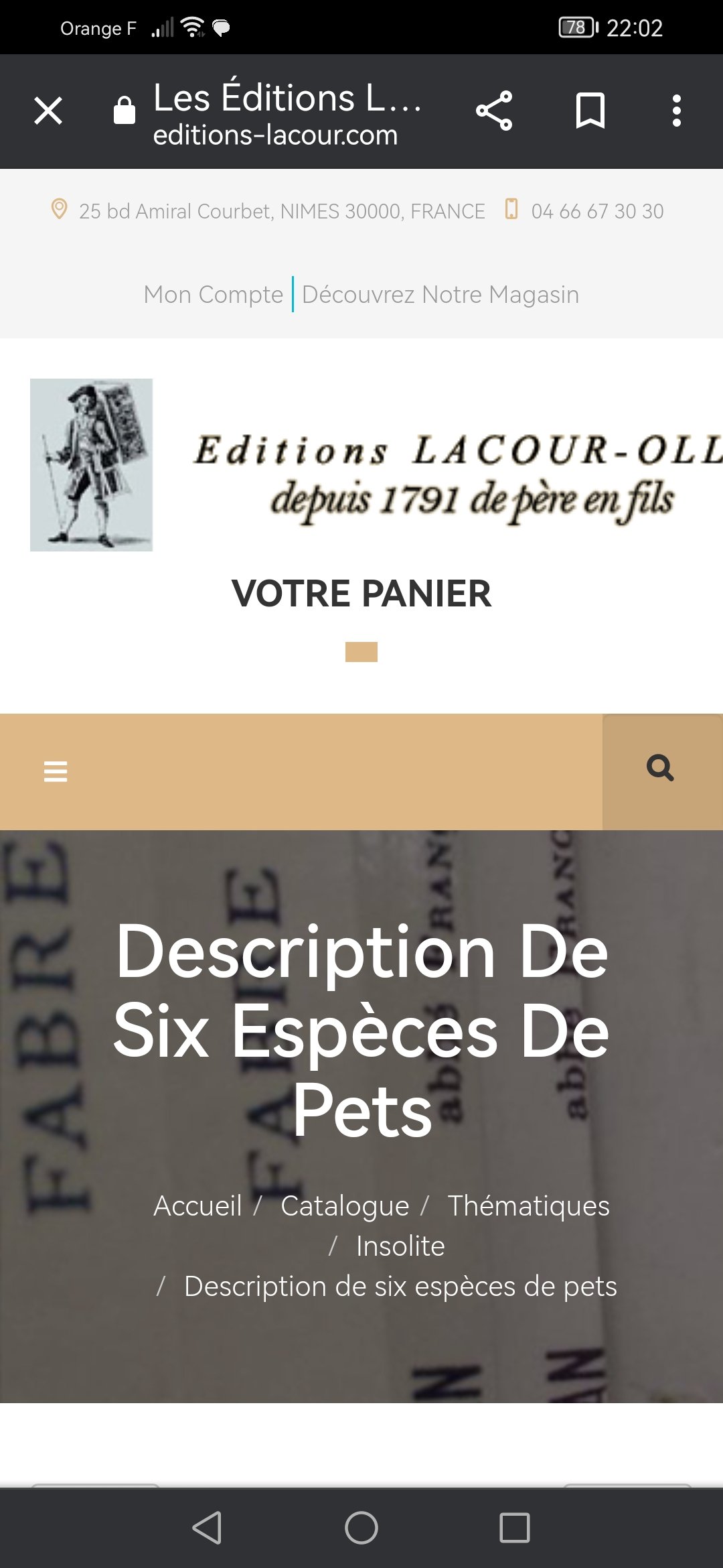 Puisque c'est le jour, voici un bouquin que j'ai depuis longtemps:La devise : Spira cula culi, faetida et iterata juvent ventrem !Et comme je ne suis pas un chien, vous avez le site de l'éditeur.