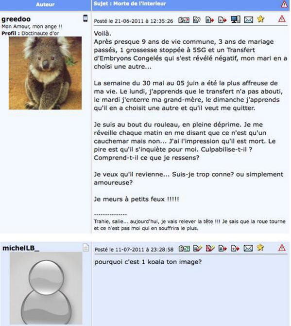 Celle où tomassini s'excuse auprès de saian (probablement supprimée mais j'aimerai tellement la revoir), la box originelle de "pourquoi c'est un koala ton image".