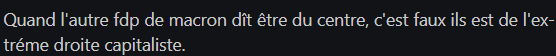 Quand l'autre fdp de macron dît être du centre, c'est faux ils est de l'extréme droite capitaliste.