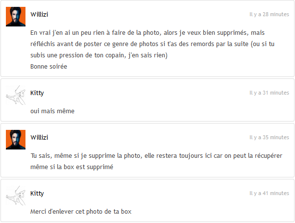 Sur le fait d'assumer toussa je veux bien. Mais elle a supprimé la box et elle a changé le nom du compte. Je ne vois pas l'utilité de continuer à l'insulter de la sorte.