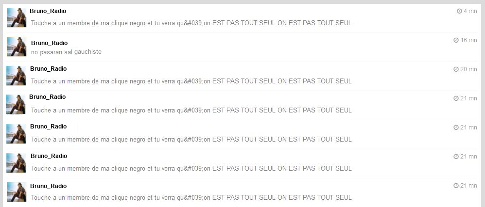 "décidons d'envoyer le même message à cette sous-merde pour le trigger et provoquer sa haine "