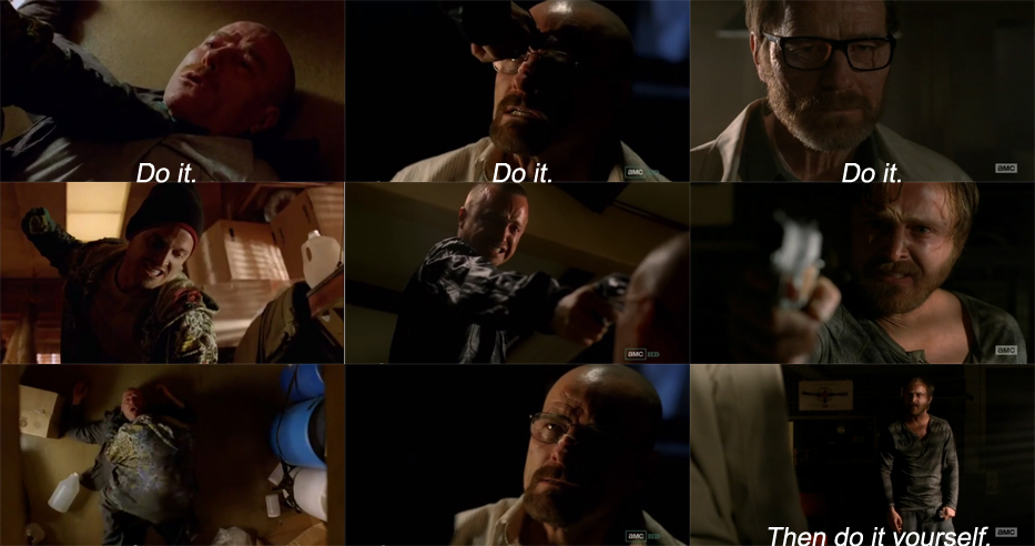 Ça y est! Walt est mort, morts sont les allemands qui retenaient Jesse, Jesse bute Todd, Todd n'a pas baisé la pute brune, la pute brune s'est faite baisée par la ricine, la ricine trouvée dans la maison familiale, la famille aura sa thune.