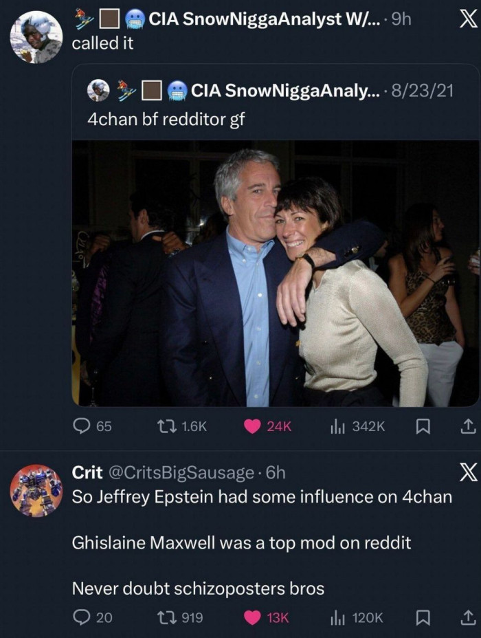 Maintenant, vous connaissez tous Ghislaine Maxwell. Il existe une théorie du complot selon laquelle elle contrôlait le compte Maxwellhill sur Reddit. Cet utilisateur était un modérateur principal sur de nombreux subs, y compris des subs influents comme worldnews, technology, politics, environment, etc. Ils étaient controversés pour être un modérateur principal sur autant de subs et contrôler qui devenait modérateur sans faire de modération réelle. Il existe de nombreux autres posts à ce sujet, mais ils ne mettent pas en évidence les points les plus forts, ne parlent pas du style d'écriture (ses e-mails ont été récemment publiés) et ne parlent souvent pas du motif pour qu'une mondaine britannique veuille contrôler les principaux subs Reddit.