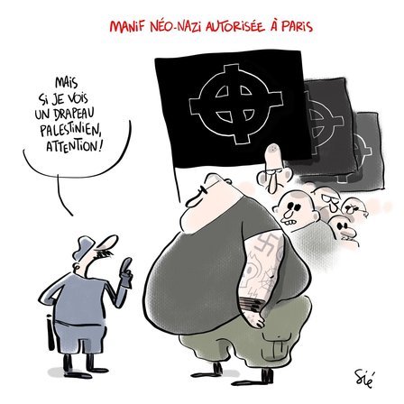 Et si tu penses toi même que c'est dangereux de laisser flotter des drapeaux communistes dans des manifestations, tu conviendras qu'il est au moins aussi dangereux de laisser flotter des drapeaux nazis en plein Paris le lendemain du 8 mai.
