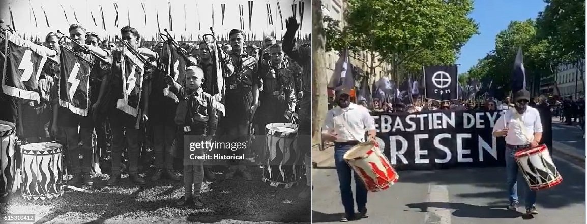 Moi qui croyais que le port du voile pour faire du foot était un danger pour la société, ravi d'apprendre qu'on peut défiler le visage masqué avec des symboles fascistes et nazis.