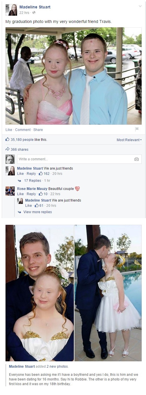 Ils ont tout les deux 18 ans, je vois pas le problème. Faut aussi savoir que le QI est variable, certaines trisomies sont même "mosaïque" et la personne a alors un QI dans la moyenne mais c'est rare. Dans tout les cas ca me choque moins qu'une nana qui reste avec un mec violent par exemple.