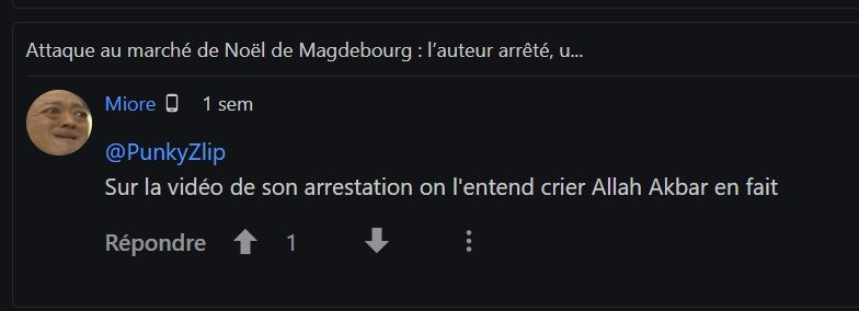 Et c'était bien entendu surtout une ref à ton immonde fake news sur l'attentat de Magdebourg : "on l'entend crier Allah Akbar".. t'as aucune limite dans la malhonnêteté.