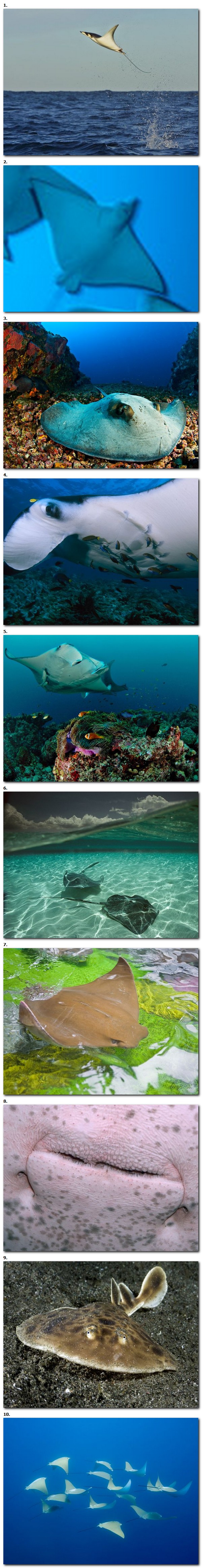 Les raies se distinguent donc par leur corps plat avec des nageoires en forme d\'aile. La plupart vivent sur le fond de la mer. Seules quelques espèces évoluent en eau libre ou non salée. Les raies se nourrissent de crustacés ou de poissons, en fonction des espèces. Certaines espèces disposent d\'un dard dont les piqûres sont souvent douloureuses et parfois mortelles pour l\'Homme.