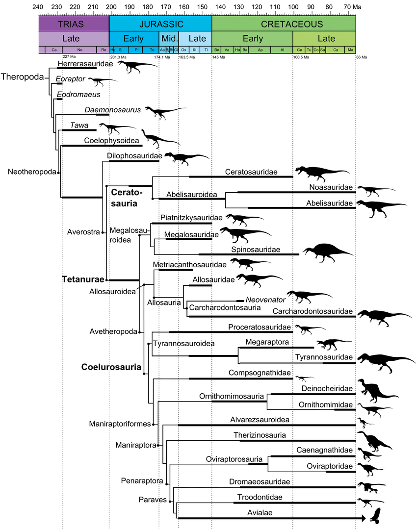Bah du coup ça se discute quand même. Les T-Rex et les poules descendent du même ancêtres communs et pas si éloigné que ça, donc bon, on est surement sur un article qui permet de meubler...