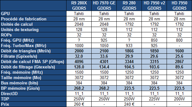 la R9 280 est une 7950 rebadgé.Pour la 7950 GHZ édition (qui n'existe pas) je t'ai dis dans le précédent message que j'avais fait une faute.