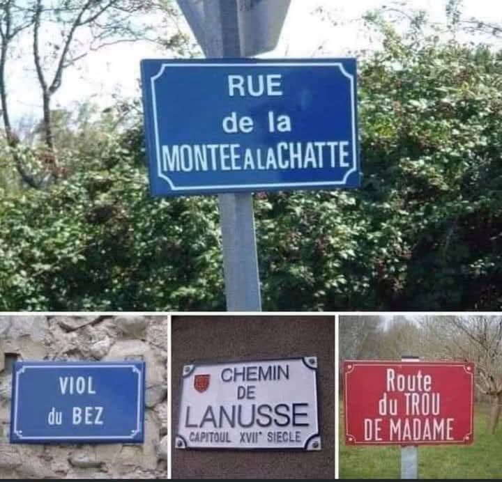 La où j'ai grandi il y avait un "chemin de l'écorche-cul". Peut-être du aux ronces abondantes? La raison s'est perdue... et le nom du chemin aussi. Le seul habitant de ce chemin, un gars pédant avec un portail a dorures de 4m de haut, manquant visiblement d'humour, à jouer des bras pour faire changer son nom... c'est maintenant un nom banal.