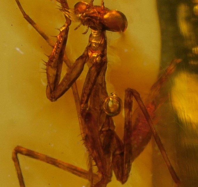 Je voudrais pas faire mon relou mais c'est pas une Mante religieuse. Mante religieuse c'est une espèce (Mantis religiosa) et cette espèce dans l'ambre n'en est clairement pas une. Elles sont de la même famille mais sûrement pas de la même espèce ou du même genre.