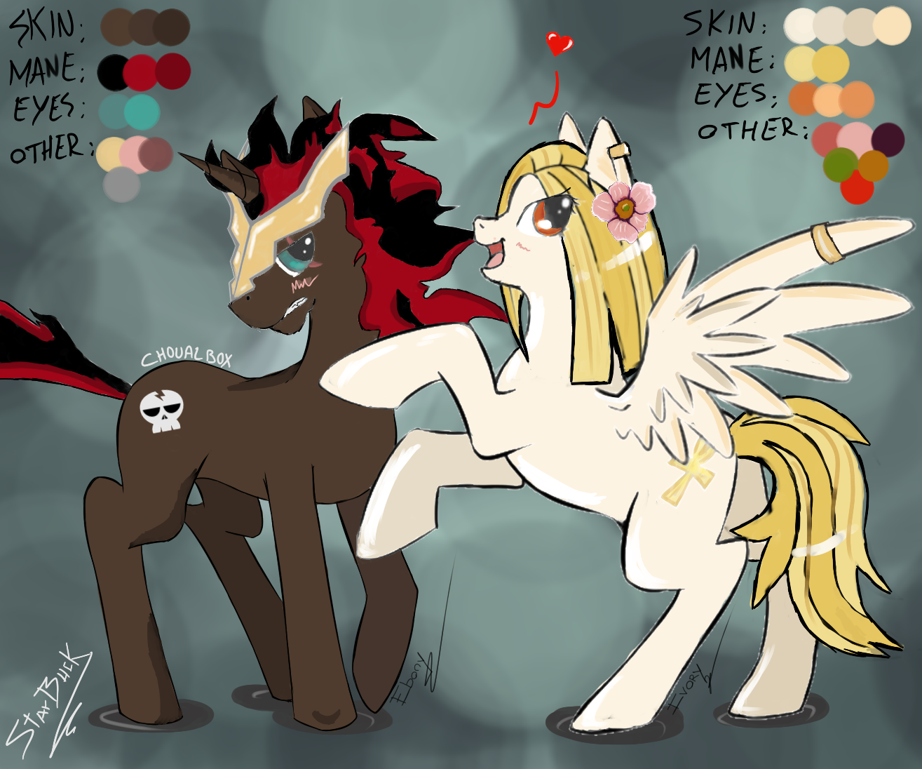 Pour la cutie mark d'Ebony j'aurais plutôt imaginé une croix à l'envers, Sinon c'est vraiment joli et sympa comme style