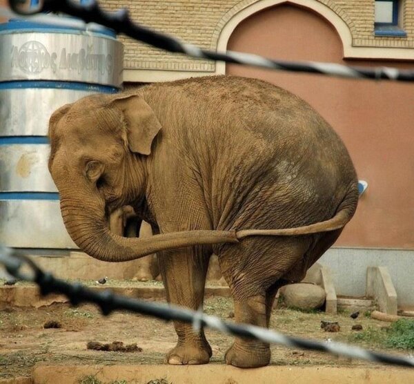 Peut être que c'est juste un éléphant dans un Zoo posay sans aucun traumatisme aussi.