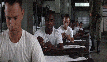 Tu te rappelles pas le passage ou il énumère toutes les recettes de crevettes? Ben là il énumère toutes les "recettes" de gifs...y'a pas à chercher plus loin.