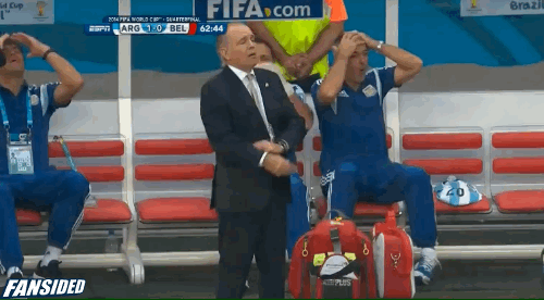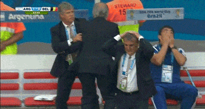Je sais plus lequel mais un Argentin a failli marquer (la balle a touché la barre) et il est tombé à la renverse (regarde le gif)