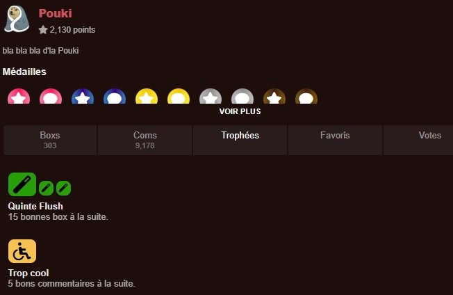 Il y a quelques mois, petitechaise postait cette box (https://choualbox.com/Mizsc) à propos du trophée "5 bons commentaires à la suite". Dans celle-ci, nous avons à la fois appris que les "bons commentaires" étaient considérés comme bons à partir de 10 points, mais aussi que ce trophée était un peu une plaie à obtenir maintenant.