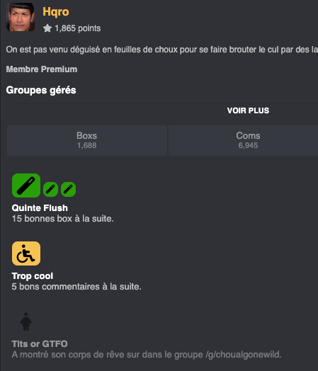 Mais voilà, après moultes blagues de qualité et quelques serrages de dents pour ne pas répondre à tout bout de champ et fumer ma bonne série (car je prépare cette box depuis un moment), me voilà aux portes des 5 bons commentaires de suite, et donc du trophée qui va avec.
