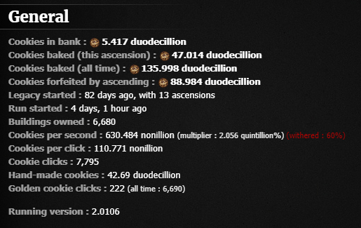 Oui je sais mais le problème c'est que du coup on te montre un moyen facile d'avoir des cookies à l'infini, après faut avoir la foi pour continuer à jouer normalement en sachant qu'il y a un moyen tranquille de péter le jeu en 2 secondes