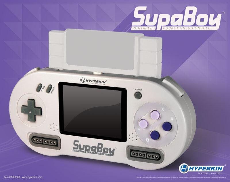 Hyperkin prévoit sous peu le lancement de leur nouvelle création, la SupaBoy, autrement dit une SuperNes portable qui utilisera les cartouches originales de la Snes! Alors, qui regrette d\'avoir jeté son vieux Super Mario World?