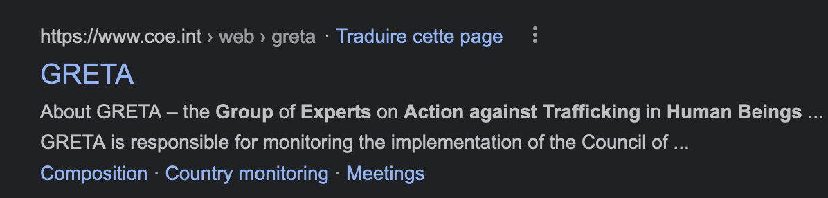 "La Roumanie avait été pressée d'agir fermement contre le trafic d'êtres humains par une antenne du Conseil de l'Europe, le Group of Experts on Action against Trafficking in Human Beings. L'acronyme de ce groupe ? Greta."
